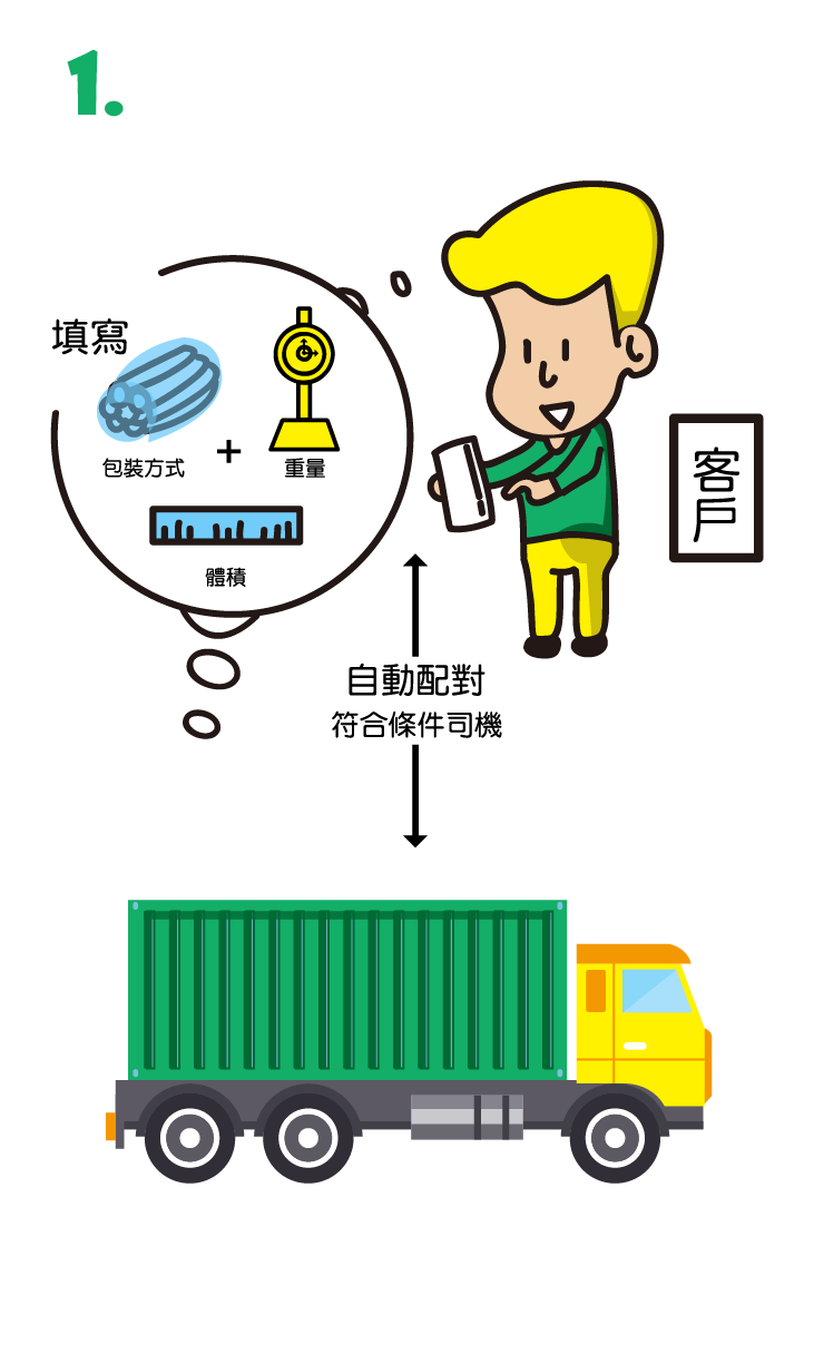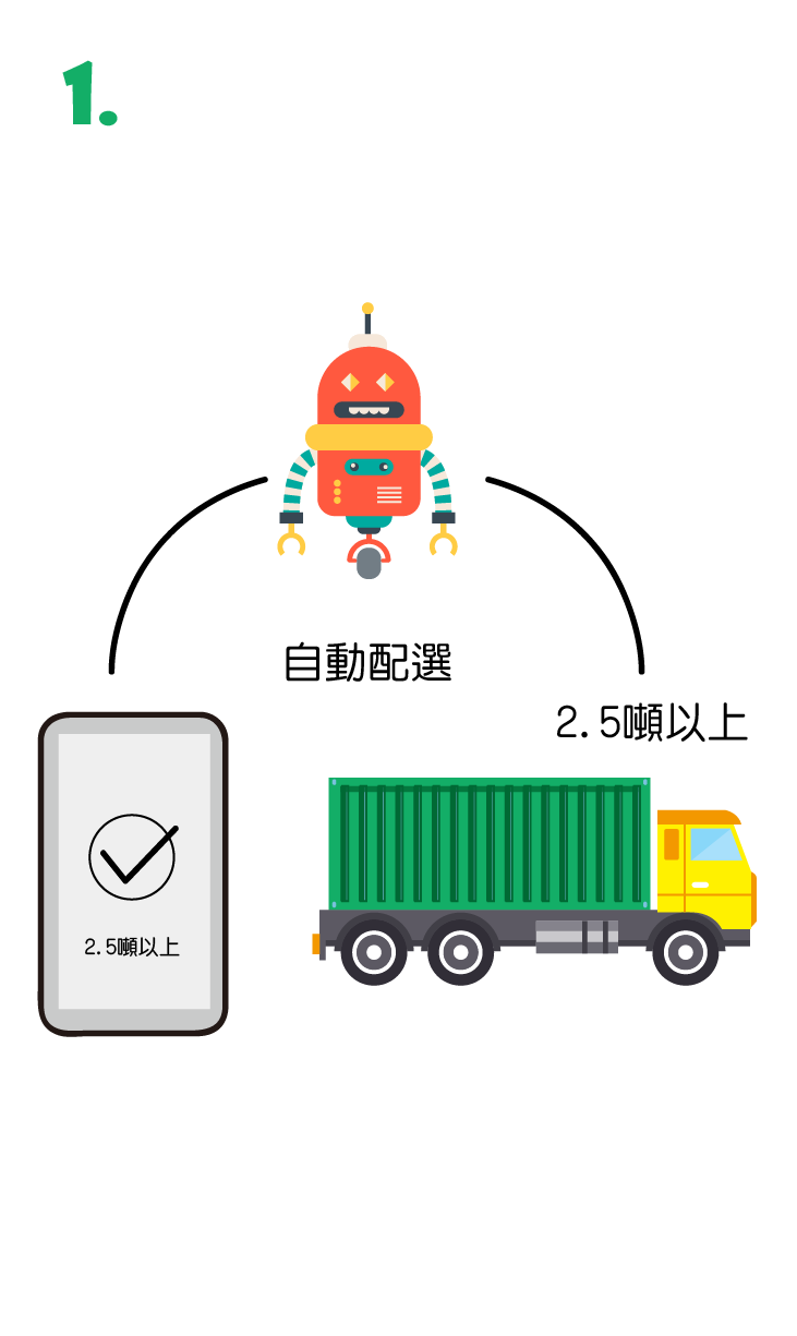 經過系統自動配對,將資訊傳送給符合條件的司機。