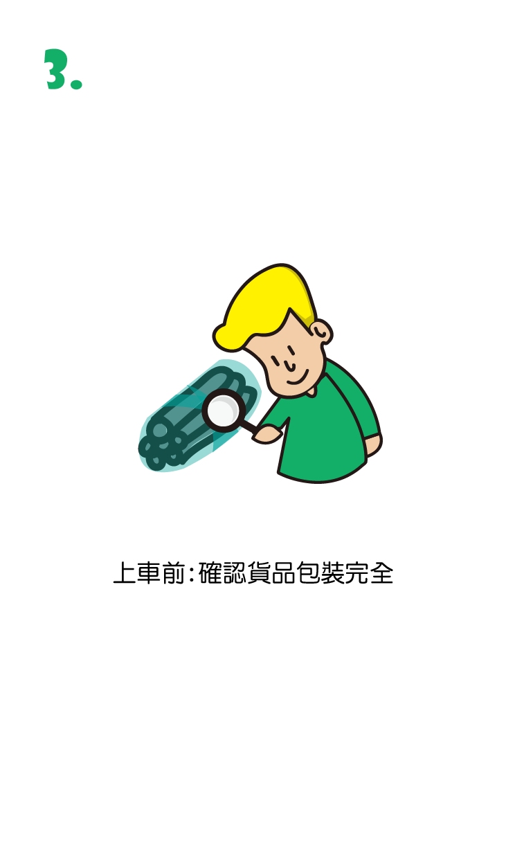 貨品上車前,請確認您的貨品、包裝是完好的。