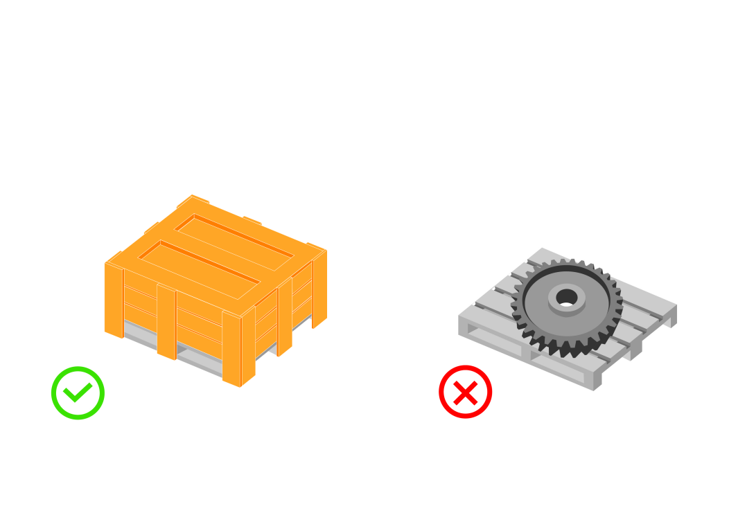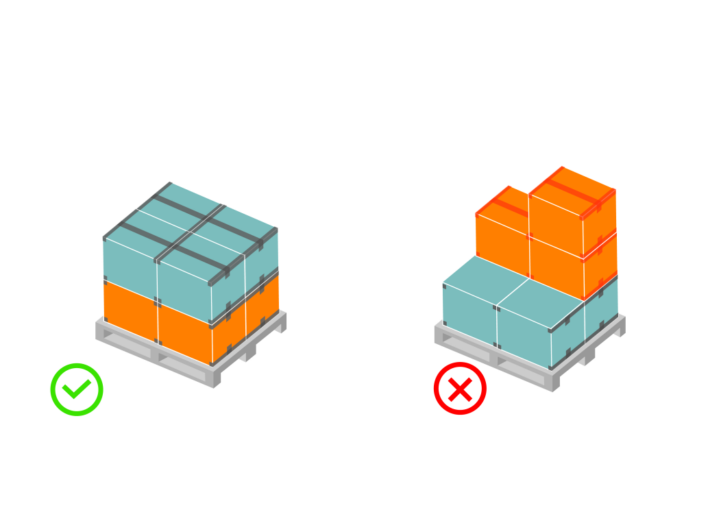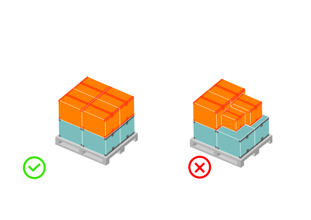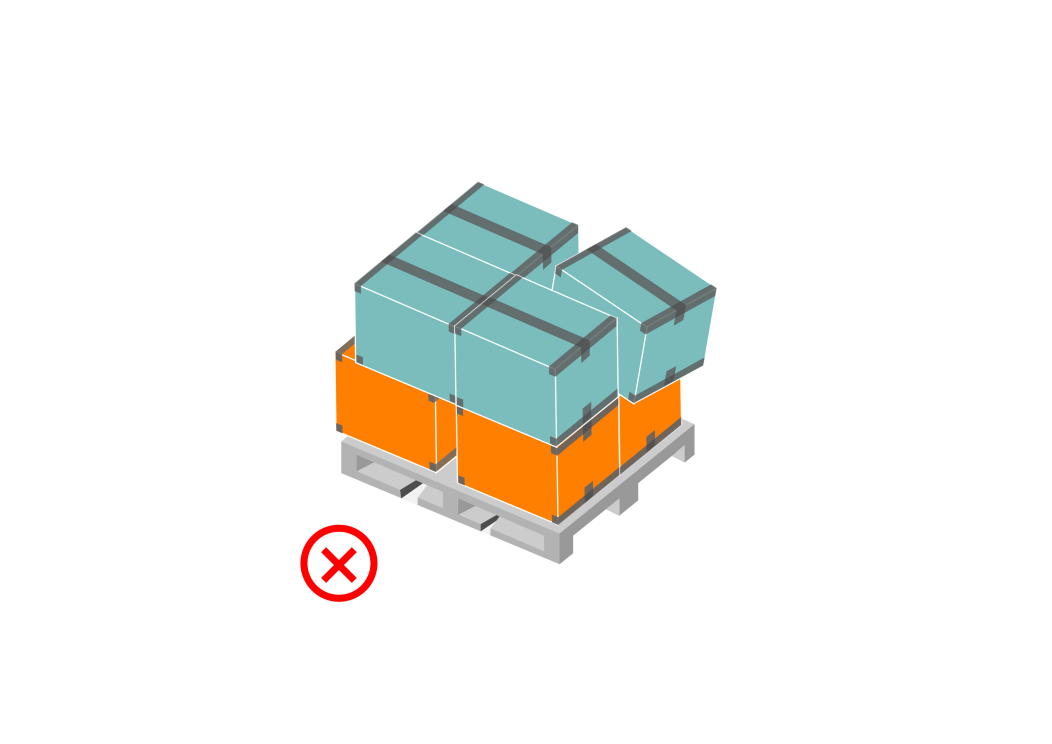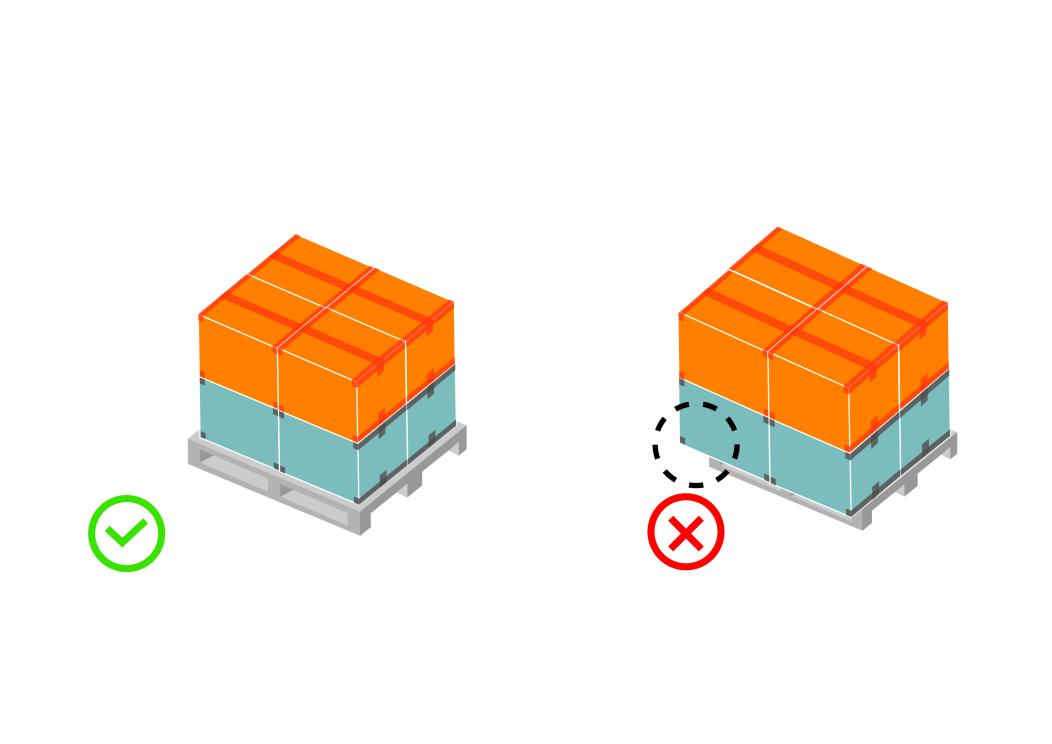 貨物應該平整方正的放在棧板上,不可有任何一邊突出超過棧板。